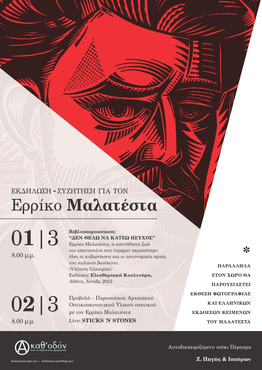 *Παράλληλα στον χώρο θα παρουσιαστεί έκθεση φωτογραφίας και ελληνικών εκδόσεων κειμένων του Μαλατέστα