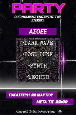 Party για την οικονομική ενίσχυση του Αναρχικού Στεκιού Φιλοσοφικής και του βιβλιοπωλείου Μαυροκόκκινο Νήμα.