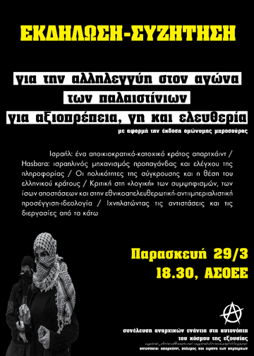 για την αλληλεγγύη στον αγώνα των παλαιστίνιων