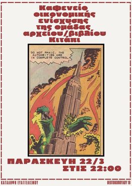 Καθώς η διακίνηση βιβλίων και τα απογευματινά ανοίγματα δεν επιφέρουν κάποια έσοδα για την δομή, αυτή την παρασκευή 22.3.24 το καφενείο της κατάληψης Ευαγγελισμού θα γίνει για την οικονομική ενίσχυση του Κιταπιού, δηλαδή για την κάλυψη των εξόδων της αντιμετώπισης των υλικών ζημιών αλλά και ενός ποσού της ομάδας που βρισκόταν στο κτήριο και κλάπηκε τη μέρα της εκκένωσης από τους μπάτσους που συμμετείχαν στην επιχείρηση.]