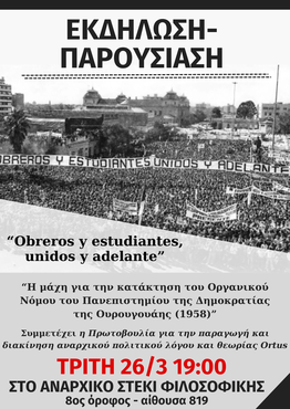 Εκδήλωση - παρουσίαση της μπροσούρας, "Η μάχη για την κατάκτηση του Οργανικού Νόμου του Πανεπιστημίου της Δημοκρατίας της Ουρουγουάης"