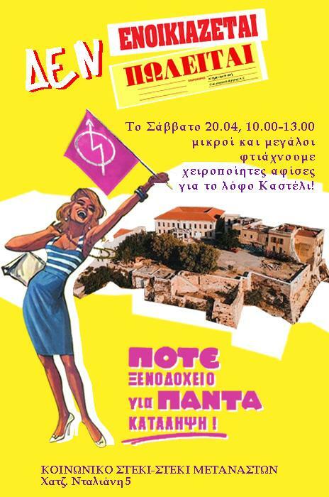 Τo Σάββατο 20.04.2024 στις 10:00 μαζευόμαστε στο Στέκι μικροί και μεγάλοι και φτιάχνουμε χειροποίητες αφίσες για τον λόφο Καστέλι.