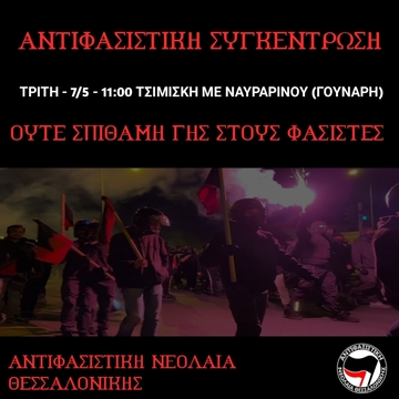 Καλούμε λοιπόν σε στήριξη της αντιφασιστικής συγκέντρωσης την Τρίτη στις 11:00, Τσιμισκή με Ναυαρίνου.