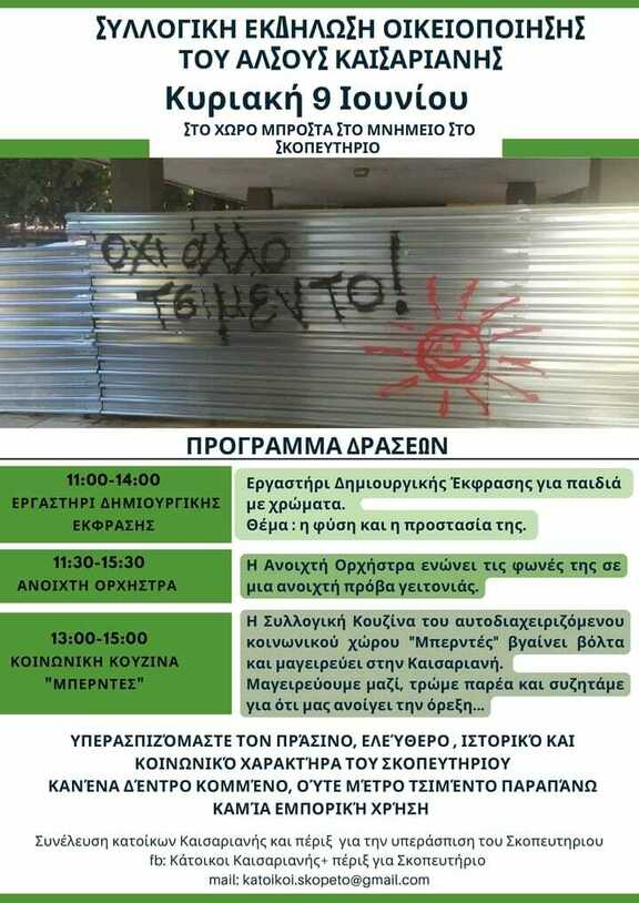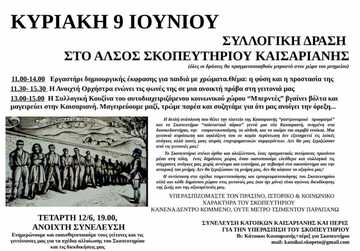 Αυτή τη Κυριακή 9 Ιουνίου θα πραγματοποιηθεί η συλλογική εκδήλωση για την οικειοποίηση του Άλσους της Καισαριανής!