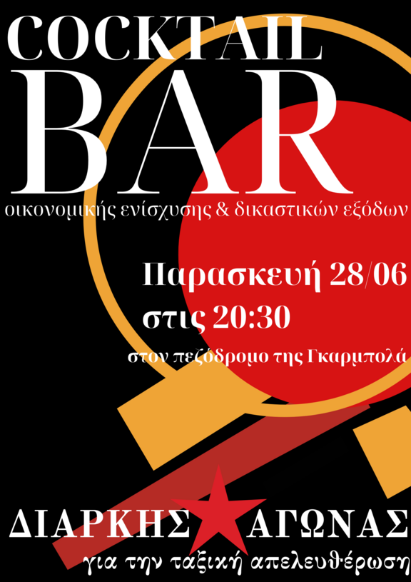 Cocktail Bar για την Οικονομική Ενίσχυση της ομάδας και για δικαστικά έξοδα στον πεζόδρομο της Γκαρπολά