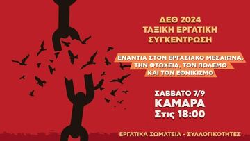 Όμως, παρά τη συναίνεση του εργοδοτικού και κυβερνητικού συνδικαλισμού ΓΣΕΕ-ΑΔΕΔΥ, οι εργαζόμενοι, ο λαός και η νεολαία είναι εδώ, δεν παραδίνονται, αγωνίζονται. Η συγκέντρωση στη φετινή ΔΕΘ και την παρουσία του Μητσοτάκη πρέπει να είναι ένα αγωνιστικό ενωτικό κάλεσμα ανατροπής της αντιλαϊκής πολιτικής, πάλης ενάντια στον εργασιακό μεσαίωνα, την φτώχεια, τον πόλεμο και τον εθνικισμό.