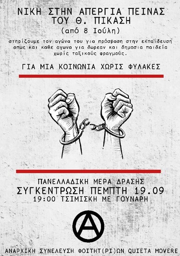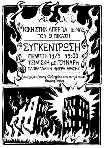 Κάλεσμα σε συγκέντρωση αλληλεγγύης εν όψει της πανελλαδικής ημέρας δράσης για την στήριξη της απεργίας πείνας του Θ. Πικάση, απεργό πείνας από τις 5/7.