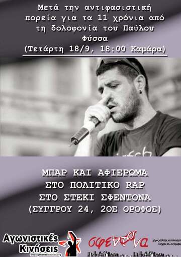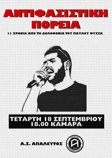 Αντιφασιστική διαδήλωση 18/9 για τα 11 χρόνια από τη δολοφονία του Παύλου Φύσσa