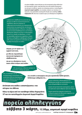Πορεία αλληλεγγύης στις καταλήψεις Λέλας Καραγιάννη 37 και Δημοτική Αγορά Κυψέλης