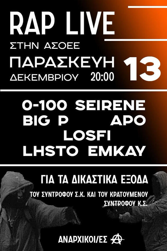 Rap Live Οικονομικής για τα δικαστικά έξοδα του συντρόφου Σ.Κ. και του κρατούμενου συντρόφου Κ.Σ.