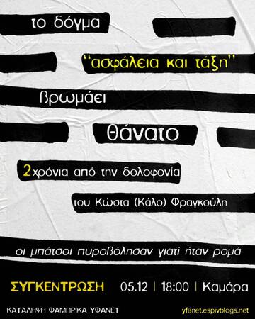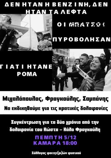 *Στηρίζουμε την συγκέντρωση για τα δύο χρόνια από τη δολοφονία του Κώστα-Κάλο Φραγκούλη, 5/12, στις 18:00, στη Καμάρα