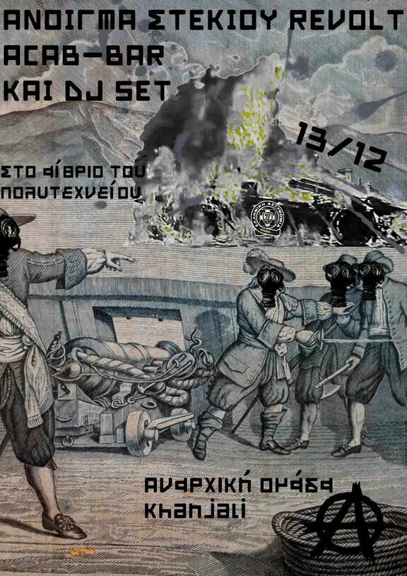 Την Παρασκευή 13/12/24 στις 21:00,άνοιγμα στεκιού Revolt και acab bar με dj set.