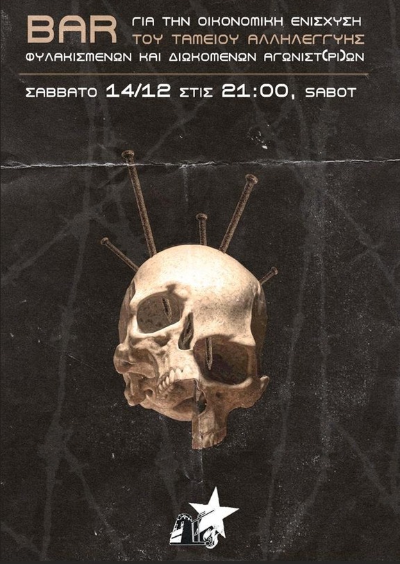 Bar για την οικονομική ενίσχυση του ταμείου αλληλεγγύης φυλακισμένων και διωκόμενων αγωνιστ(ρι)ών.