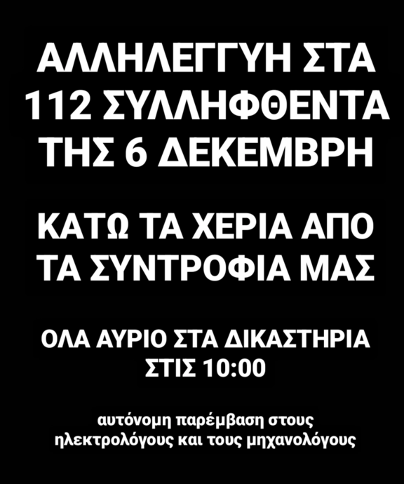 ΑΛΛΗΛΕΓΓΥΗ ΣΤΑ 112 ΣΥΛΛΗΦΘΕΝΤΑ ΤΗΣ 6 ΔΕΚΕΜΒΡΗ