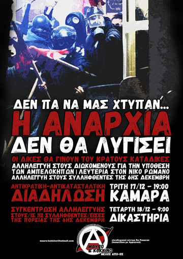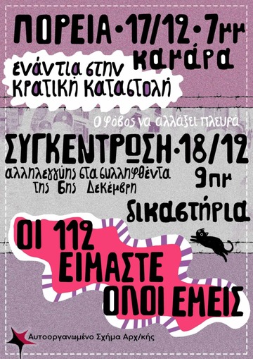 Moreover, we do not forget the gathering at the courts of Thessaloniki for those arrested during the march of 6 December. Wednesday 18/12, at 9am.