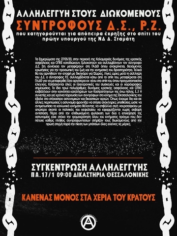 Συγκέντρωση αλληλεγγύης στους διωκόμενους αναρχικούς Δ.Σ. και Ρ.Ζ.