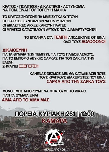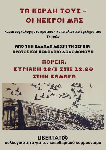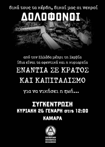 Κυριακή 26/1 12:00 - Καμάρα, στηρίζουμε την συγκέντρωση για το κρατικό έγκλημα των Τεμπων.