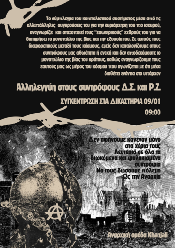 Συγκέντρωση αλληλεγγύης στους διωκόμενους αναρχικούς Δ.Σ. και Ρ.Ζ.