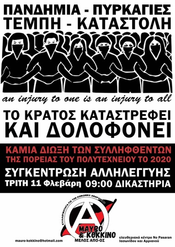 ΣΥΓΚΕΝΤΡΩΣΗ ΑΛΛΗΛΕΓΓΥΗΣ ΣΤΟΥΣ ΣΥΛΛΗΦΘΕΝΤΕΣ ΤΗΣ ΠΟΡΕΙΑΣ ΤΟΥ ΠΟΛΥΤΕΧΝΕΙΟΥ ΤΟΥ 2020 - ΤΡΙΤΗ 11/02, 09:00 ΔΙΚΑΣΤΗΡΙΑ