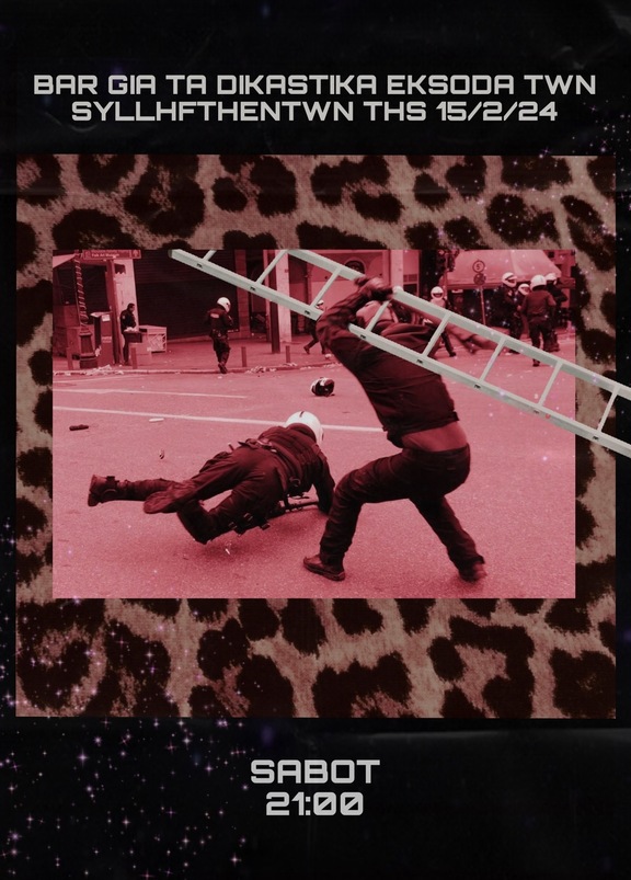 Στις 15/02/24 ενώ είχε καλεστεί φοιτητική πορεία στην Καμαρα ενάντια στην ίδρυση ιδιωτικών πανεπιστημίων, κρεμάστηκε γιγαντοπανό ενάντια στον νέο ποινικό κώδικα από την Ανοιχτή συνέλευση ενάντια στον νέο Π.Κ. Μετά την ολοκλήρωση της δράσης και αφού είχε ξεκινήσει η πορεία οι μπάτσοι σταμάτησαν τέσσερα συντρόφια τα οποία προσήχθησαν και εν τέλει συνελήφθησαν κατηγορούμενα για την παραπάνω δράση.
