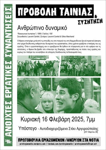 Προβολή ταινίας «Ανθρώπινο δυναμικό» του Laurent Cantet & συζήτηση
