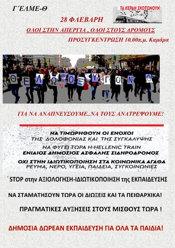 Γενικη απεργία 28/2 - Για το κρατικό έγκλημα στα Τέμπη