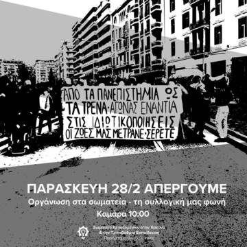 28 ΦΛΕΒΑΡΗ: ΟΛΟΙ ΣΤΗΝ ΑΠΕΡΓΙΑ, ΟΛΟΙ ΣΤΟΥΣ ΔΡΟΜΟΥΣ !