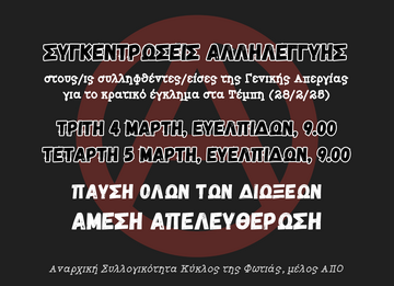 Συγκέντρωση αλληλεγγύης στους/στις συλληφθέντες/ -είσες της γενικής απεργίας της 28/2 :