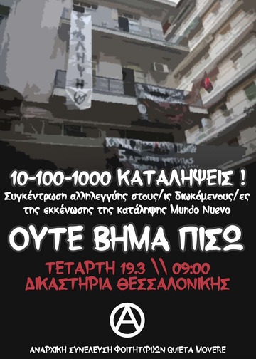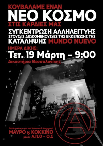 Αλληλεγγύη στους/ις διωκόμενους/ες συντρόφους/ισσες της εκκένωσης της κατάληψης Mundo Nuevo στη Θεσσαλονίκη