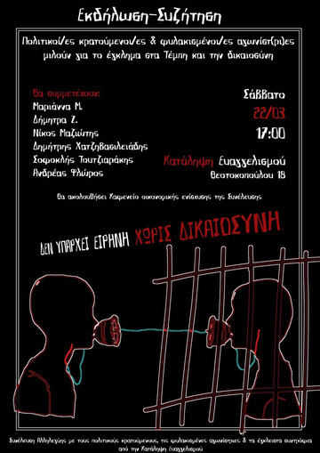 ΕΚΔΗΛΩΣΗ - ΣΥΖΗΤΗΣΗ: Πολιτικοί/ες κρατούμενοι/ες & φυλακισμένοι/ες αγωνιστ(ρι)ες μιλούν για το έγκλημα στα Τέμπη και τη Δικαιοσύνη .