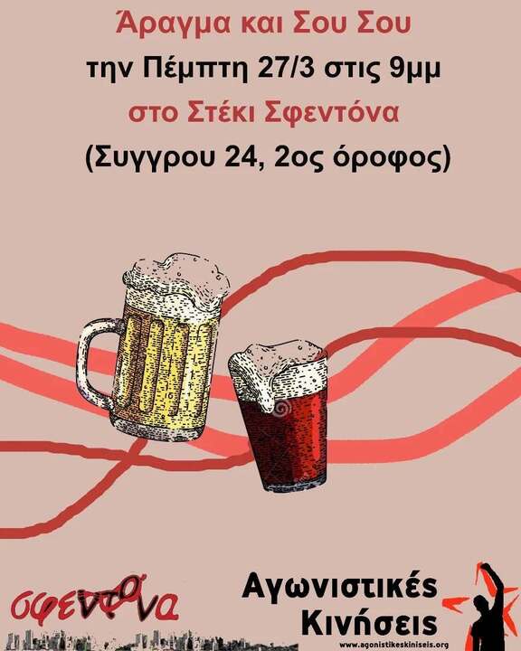Οι Αγωνιστικές Κινήσεις ανοίγουμε και αυτήν την Πέμπτη το στέκι Σφεντόνα! Για την οικονομική ενίσχυση και ανεξαρτησία των σχημάτων μας!