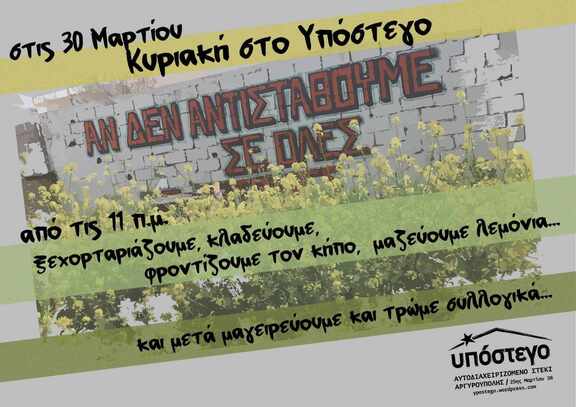 Αυτοδιαχειριζόμενο στέκι Αργυρούπολης Υπόστεγο | 25ης Μαρτίου 38 | http://ypostego.wordpress.com | ypostego@espiv.net