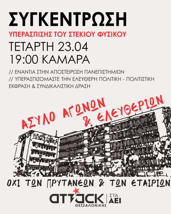 Αλληλεγγύη στο Στέκι Φυσικού (ΑΠΘ) και την Κατάληψη Ευαγγελισμού (Ηράκλειο)
