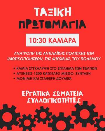 ΑΠΕΡΓΙΑΚΗ ΣΥΓΚΕΝΤΡΩΣΗ ΠΕΜΠΤΗ 1 ΜΑΙΟΥ 10:30 ΣΤΗΝ ΚΑΜΑΡΑ