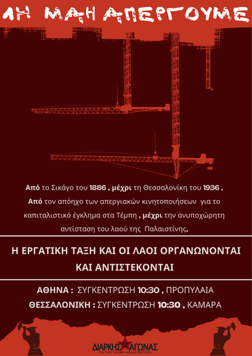 Βαδίζουμε στον ίδιο δρόμο των απεργών του Σικάγο και του Μάη του 36, διεκδικώντας: