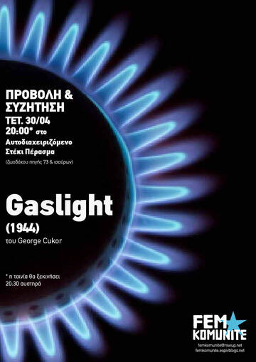 Το Gaslight, ταινία του 1944, αφηγείται την ιστορία μιας γυναίκας η οποία, μέσα από τη συστηματική χειραγώγηση του συζύγου της, πείθεται πως χάνει τη λογική της. Ο αρχικά κυριολεκτικός τίτλος έχει αποκτήσει σήμερα συμβολική σημασία, δίνοντας το όνομά του στον όρο gaslighting: μια μορφή ψυχολογικής κακοποίησης κατά την οποία πατριαρχικές πρακτικές απονομιμοποιούν τις εμπειρίες μας, παρουσιάζοντας τις αντιδράσεις μας ως υπερβολικές, παράλογες ή «υστερικές», με σκοπό να μας αποδυναμώσουν και να μας ελέγξουν.