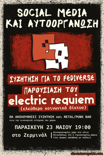 Social media και αυτοοργάνωση: Συζήτηση για το Fediverse, παρουσίαση του εγχειρήματος Electric Requiem & Metal/Punk bar οικονομικής ενίσχυσης