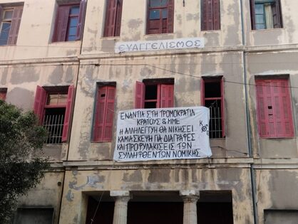 Η πρώτη κρατική αντεπίθεση ξεκίνησε με τις εκκενώσεις κατάληψεων Ρασπραβα, Εξωστρεφής, Ευαγγελισμός (ο οποίος ανακαταληφθηκε άμεσα απο τα συντρόφια) και Στέκι Φυσικού ΑΠΘ, οι οποίες δέχτηκαν το πρώτο κύμα καταστολής. Βαφτίστηκαν κέντρα ανομίας απο τα ΜΜΕ, πάντα έτοιμα να στηρίξουν την κυβέρνηση σε οποιαδήποτε κίνησή της. Οι καταλήψεις ειναι ζωτικά κομμάτια του αναρχικού χώρου, κέντρα αγώνα που μέσα τους μπορούν να γεννηθούν νέα συντρόφια και να ζήσουμε στην πράξη την λέξη αυτοοργάνωση.