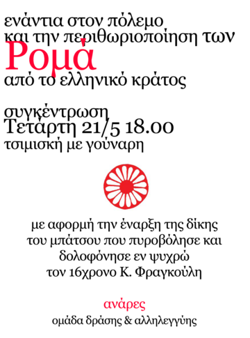 Συγκέντρωση: Τετάρτη 21 Μάη, 6 μμ, Τσιμισκή με Γούναρη