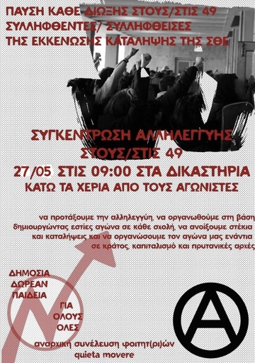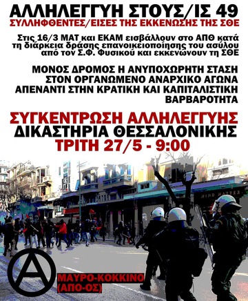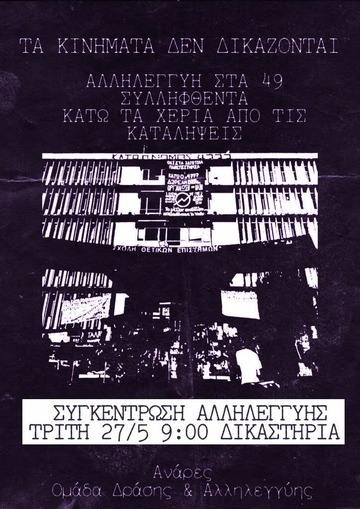 Συγκέντρωση αλλυλεγγύης στα 49, 27/5 9:00 Δικαστήρια