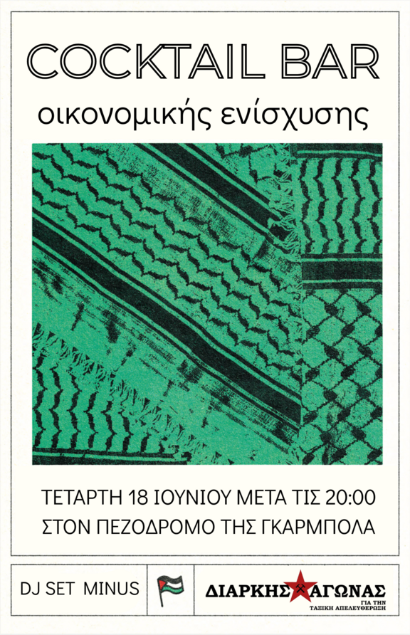 Cocktail bar οικονομικής ενίσχυσης την Τετάρτη 18/6 μετά τις 8 στον πεζόδρομο της Γκαρμπολά.