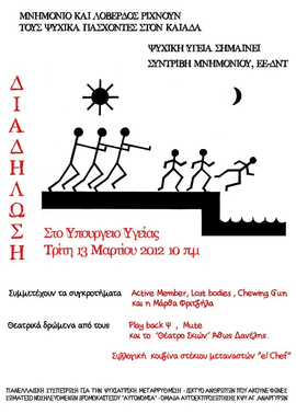 Για να δημιουργήσουμε τους κοινωνικούς και κινηματικούς όρους (αλλά και της εναλλακτικής κουλτούρας), που θα επιτρέψουν ν΄ ακουστεί η φωνή της ψυχικής οδύνης, η διαφορετική εμπειρία, αλήθειες και λογικές καταπιεσμένες και ακυρωμένες από την κατεστημένη «κανονικότητα», ν΄ αναδειχτεί η σημασία μιας εναλλακτικής προσέγγισης σε μια «κανονικότητα» πιο άρρωστη από αυτό που, αυτή η «κανονικότητα» (του μνημονίου, της εξαθλίωσης και της κοινωνικής εξόντωσης), ορίζει ως «αρρώστια».