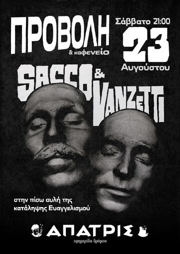 98 χρόνια μετά την δολοφονία των αναρχικών Sacco και Vanzetti, προβολή της ομώνυμης ταινίας.