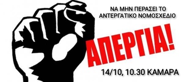 Όλοι/ες στην απεργία, Τρίτη 14 Οκτώβρη, 10:30, Καμάρα, την ημέρα που κατατίθεται προς ψήφιση το νομοσχέδιο