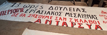 Απέναντι στα σχέδια των αφεντικών για μια ζωή συνεχούς και ασταμάτητης δουλειάς, απαιτούμε λιγότερες ώρες εργασίας με σημαντική αύξηση στους μισθούς, στο ύψος των αναγκών μας.