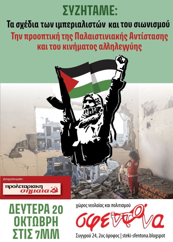 Η «Προλεταριακή Σημαία» ΣΥΖΗΤΑ για την Παλαιστίνη. Δευτέρα, 20 του Οκτώβρη, στις 7μμ, στο Χώρο Νεολαίας και Πολιτισμού ΣΦΕΝΤΟΝΑ!
