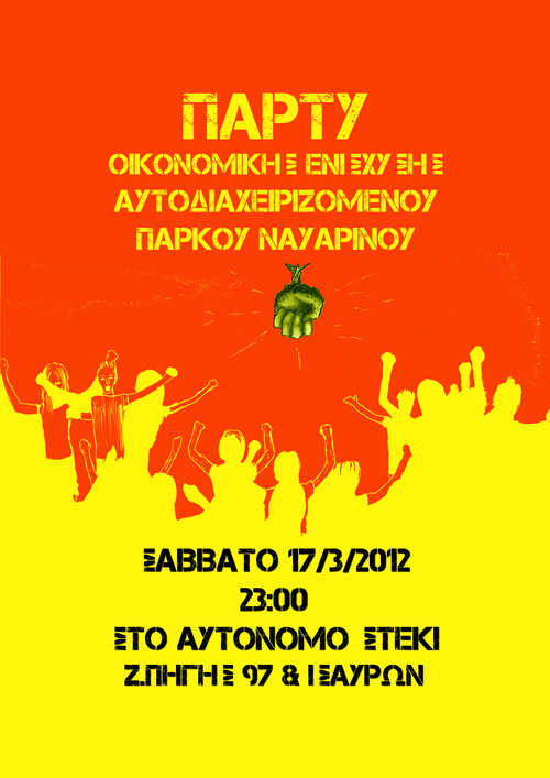 ΟΙΚΟΝΟΜΙΚΗΣ ΕΝΙΣΧΥΣΗΣ ΤΟΥ ΠΑΡΚΟΥ ΝΑΥΑΡΙΝΟΥ ΣΤΟ ΑΥΤΟΝΟΜΟ ΣΤΕΚΙ, ΖΩΟΔΟΧΟΥ ΠΗΓΗΣ 97 & ΙΣΑΥΡΩΝ, ΤΟ ΣΑΒΒΑΤΟ 17 ΜΑΡΤΙΟΥ, ΣΤΙΣ 23:00
