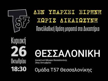 Το Πανελλαδικό Δίκτυο Πόλεων Τ57 καλεί όλους τους πολίτες να σταθούν την Κυριακή 26 Οκτωβρίου 2025, στις 18:30, μπροστά στα Δικαστήρια της πόλης τους!