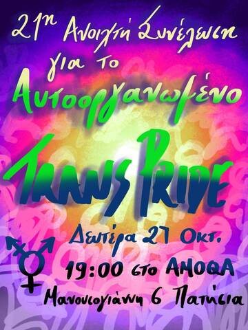 Καλούμε στη 21η ανοιχτή συνέλευση για αυτοοργανωμένο Trans Pride.
