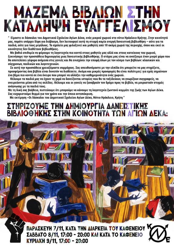 Παρά την κρατική τρομοκρατία, συνεχίζουμε το μάζεμα βιβλίων για τους Αγ. Δέκα! Στηρίζουμε την συγκεκριμένη κίνηση με το άνοιγμα της Κατάληψης τις απογευματινές ώρες στις 7-9/11 για το μάζεμα (όσο περισσότερων) βιβλίων και την επίτευξη του στόχου των δασκάλων.